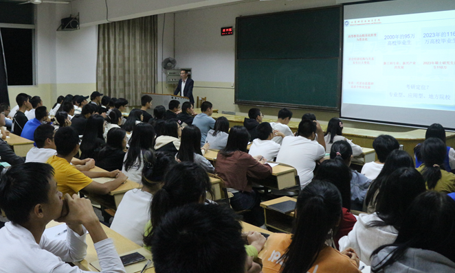 邓永和的讲解逻辑清晰,数据详实,内容丰富,深受同学们的欢迎。本次讲座不仅使同学们对当前考研形势有了更加清晰的认识,也帮助同学们更好的明确努力方向,必将进一步推动学院学风建设,提升学院考研氛围。