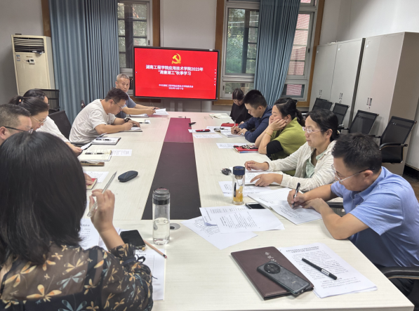 2023年10月17日,澳门电子pg游戏官网在办公楼101开展了2023年“清廉湖工”秋季学习活动。院党委书记黎娅主持学习,院党委理论学习中心组成员、各支部书记及教工党员参加学习。