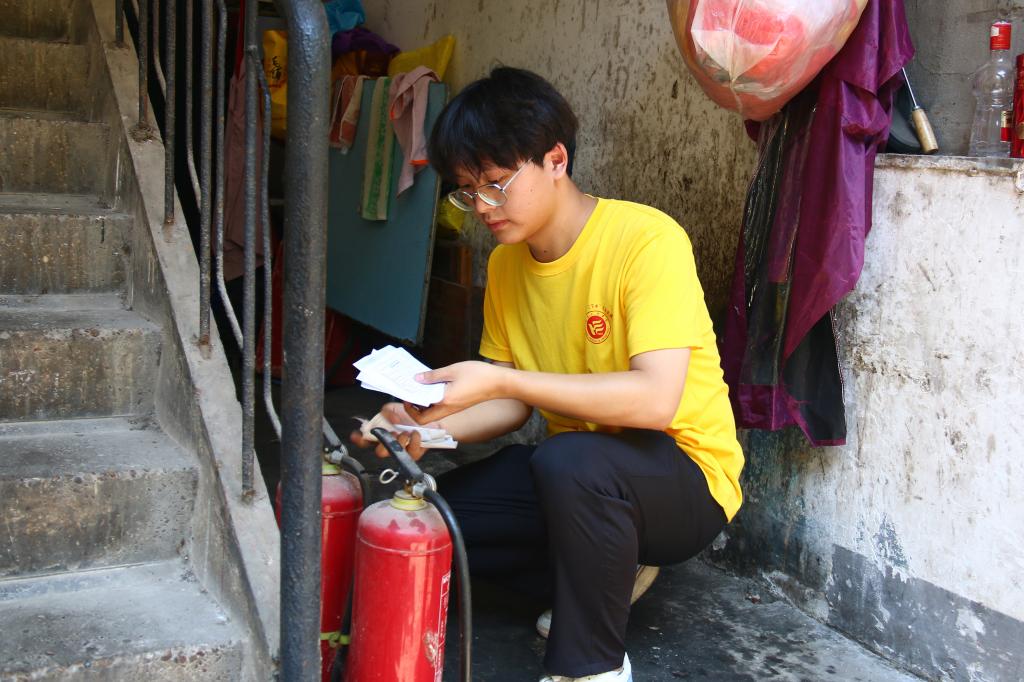 志愿者们在社区工作人员的带领下,走进社区,对消防器材进行检查,确保社区灭火器能够正常使用;对老年人进行防诈骗宣传,并告知96110为防电信网络诈骗专用号码;对小朋友进行防溺水安全教育,发放防溺水宣传扇。