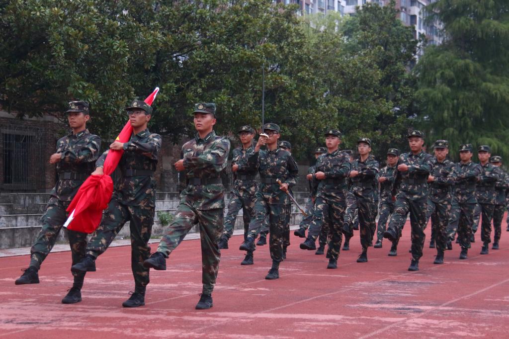 七点,仪式正式开始。护旗手们精神抖擞,迈着整齐有力的步伐,护卫五星红旗走向升旗台。随着激昂的《义勇军进行曲》奏响,升旗手奋力挥臂,将国旗展向天空。全体人员整齐列队,神情庄重,高唱国歌,向国旗行注目礼。升旗仪式后,总营长尹亮带领大一新生回顾了九一八事变那段惨痛的历史,他握拳高呼,号召大一新生不怕苦累,坚持完成军训,践行先辈的奋斗与奉献精神。