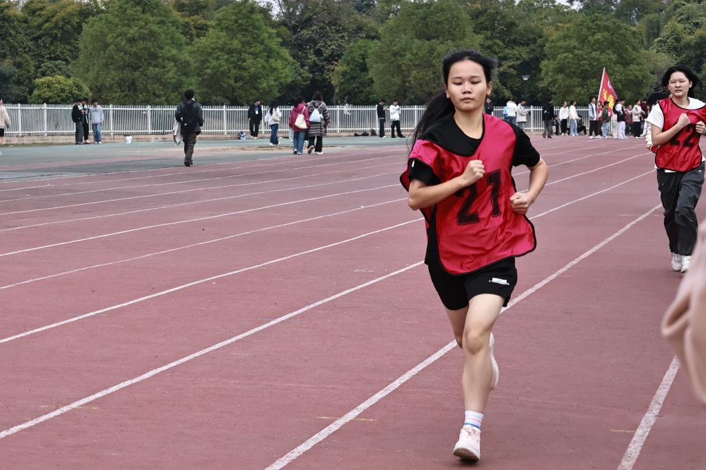 上午,女子800米决赛在众人瞩目下鸣枪开赛。该项目兼具耐力与速度考验,竞争异常激烈,英语2481班文敏代表澳门电子参赛。初期,她稳扎稳打,处于队伍中游。进入第一圈后半程,她调整呼吸、加快步频,凭借灵活跑位在弯道多次超越,顺利跻身前列。冲刺阶段,全场欢呼声达到顶峰,文敏拼尽最后力气,奋力摆动双臂,大步冲向终点。以3分21秒66的成绩荣获第八名。